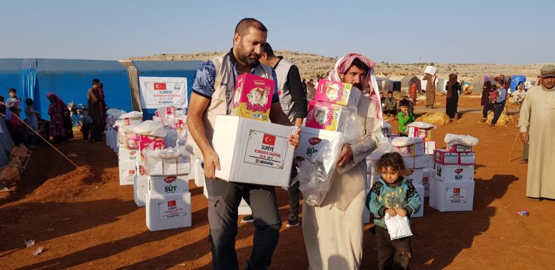İdlib'in merkez ve kırsal bölgelerinde yaşayan ihtiyaç sahipleri için Mevlid Kandili münasebetiyle kumanya, bebek bisküvisi, süt ve ekmek dağıtımı gerçekleştirildi.