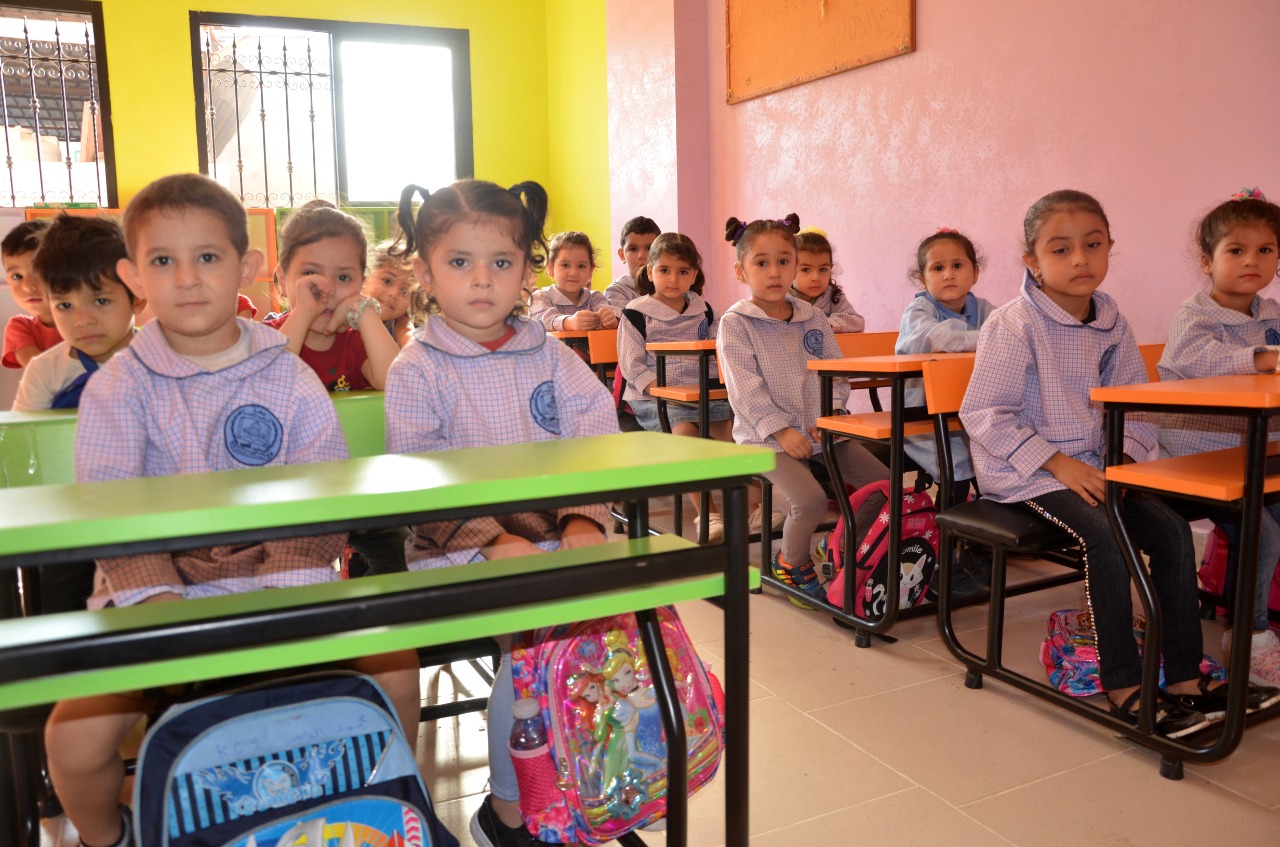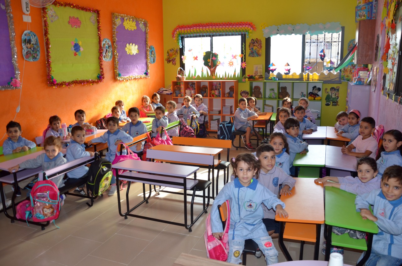 Lübnan Burj El Barajne mülteci kampında yaşayan Filistinli mülteci çocukların eğitim gördüğü anaokulunda 3 ile 6 yaş aralığında yaklaşık 200 öğrenci öğrenim görüyor.